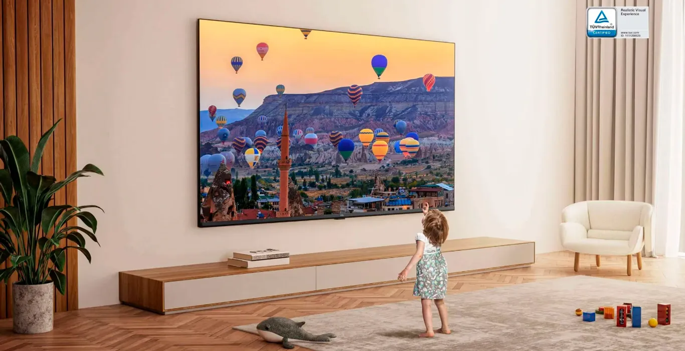 Телевізор TCL QD-Mini LED забезпечує комфортні природні кольори, які забезпечують реалістичну досконалість кольору, вражаючий контроль контрасту та відчуття перегляду без мерехтіння за стандартом TÜV Rheinland.1
