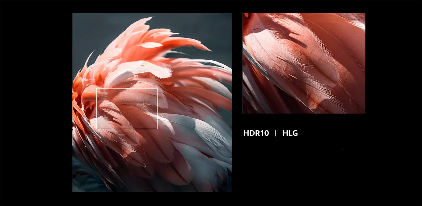 Відчуйте глибину та реалістичність зображення завдяки підтримці сучасних технологій HDR10 та HLG. Ці формати розширеного динамічного діапазону виводять картинку на новий рівень, забезпечуючи вражаючу гру світла та тіні. Світлі сцени стають яскравішими, а темні — насичено глибокими, створюючи збалансований і динамічний візуальний досвід.