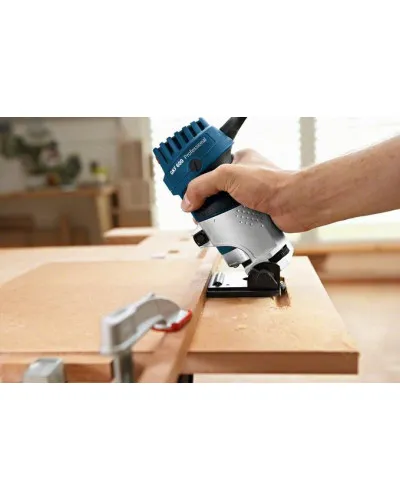 Фрезер BOSCH GKF 600 Professional - зручний фахівець з обробки крайок. Кромковий фрезер BOSCH GKF 600 Professional має компактне виконання і оснащення ергономічним руків'ям для правильного ведення фрезера BOSCH GKF 600 Professional однією рукою під час обробки крайок. Глибина заходу плавно регулюється за допомогою спеціального коліщатка. Беззазорна фіксація електромотора у фрезері BOSCH GKF 600 Professional забезпечує точне регулювання і повторюваність.