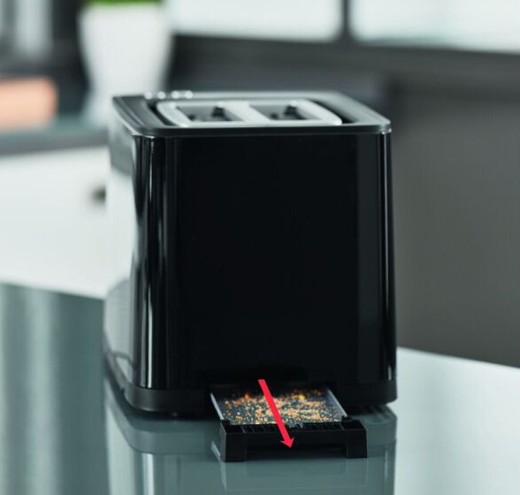 У нижній частині тостера є піддон. Він має висувну структуру, за рахунок чого ви завжди зможете вилучити його для очищення. Така проста маніпуляція служить способом підтримки чистоти навколо техніки.