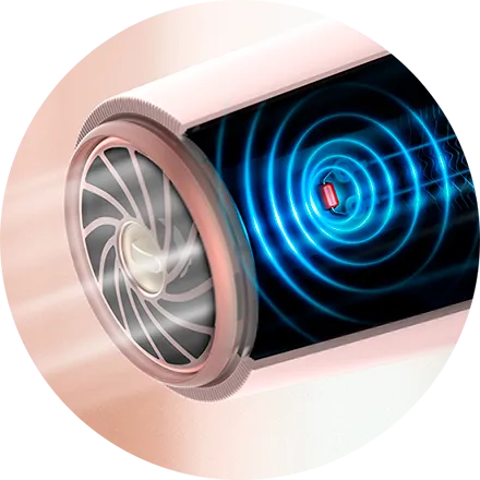 Розумний сенсор відповідає за контроль температури. Ви можете бути впевнені, що вона не буде зависокою і що ваше волосся не буде перегріватись. Воно на 100% захищене від пошкоджень, спричинених надмірно високими температурами1. До того ж, сушіння волосся на 20% швидше3.