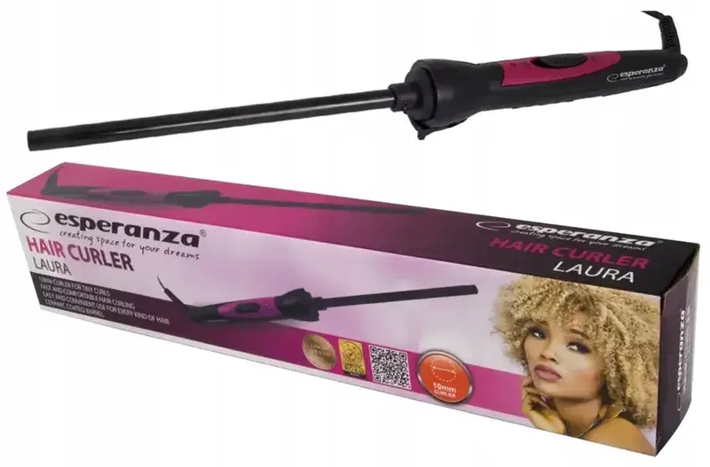 Плойка Esperanza Laura оснащена вузьким нагрівальним стрижнем діаметром 10 мм, що ідеально підходить для створення дрібних, чітких локонів. Завдяки такому діаметру ви зможете робити стильні зачіски у дусі «афро» або просто додати об'єму волоссю. Це відмінний вибір для тих, хто любить грайливі, пишні образи і хоче досягати максимального ефекту навіть на короткому або тонкому волоссі.