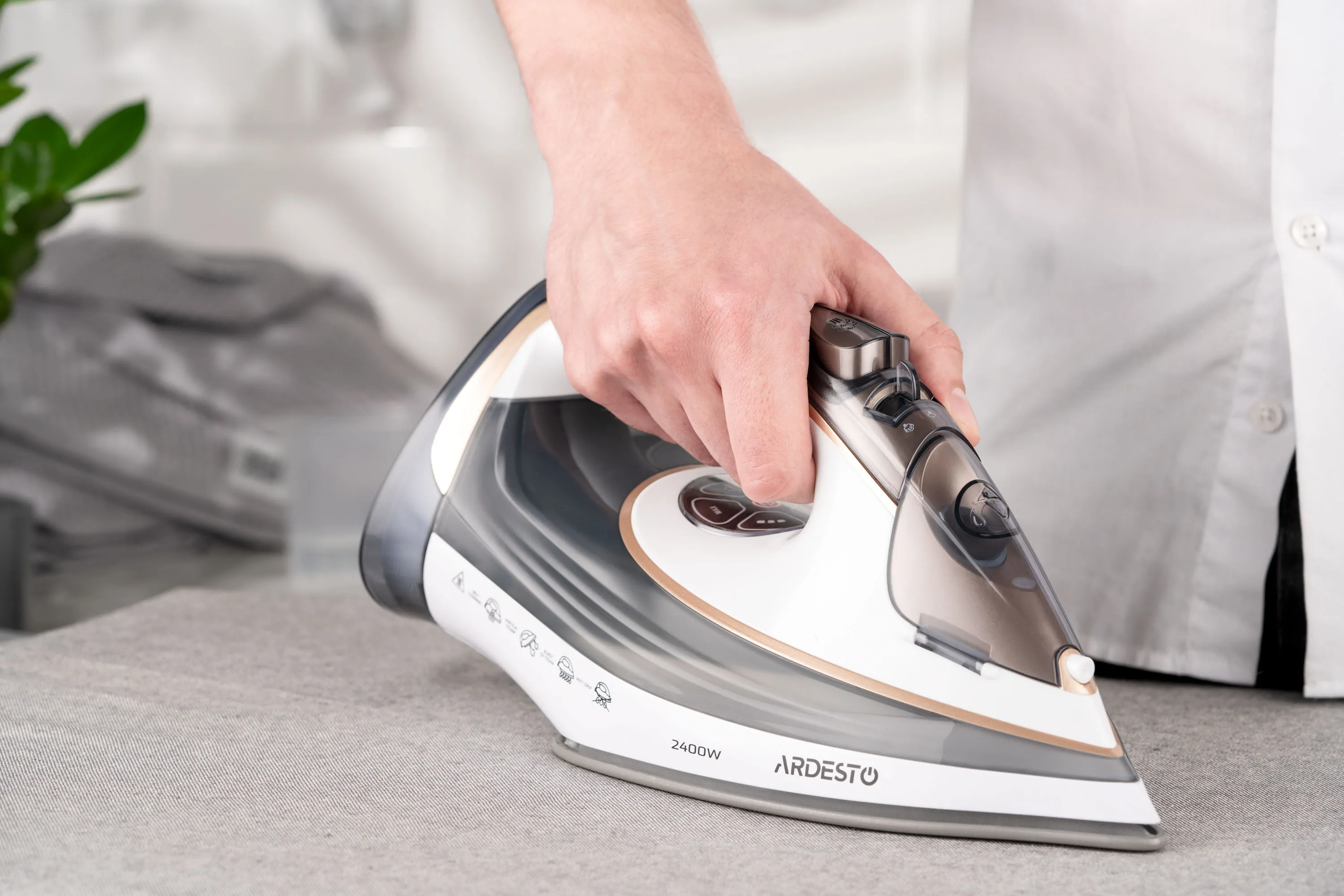 Модель IR-B2245-E оснащено збільшеним резервуаром для води об’ємом 400 мл та ергономічною кришкою для максимальної зручності наповнення. Передбачено систему від протікання «протикапля». Стійка до пошкоджень керамічна підошва з 86 перфорованими отворами рівномірно нагрівається та плавно ковзає у будь-якому напрямку. У прасці реалізовано електронний контроль температури та можливість вертикального та горизонтального відпарювання. Завдяки захисту від кальцинації буде збережено високу ефективність відпарювання та надійну роботу праски на довгі роки.