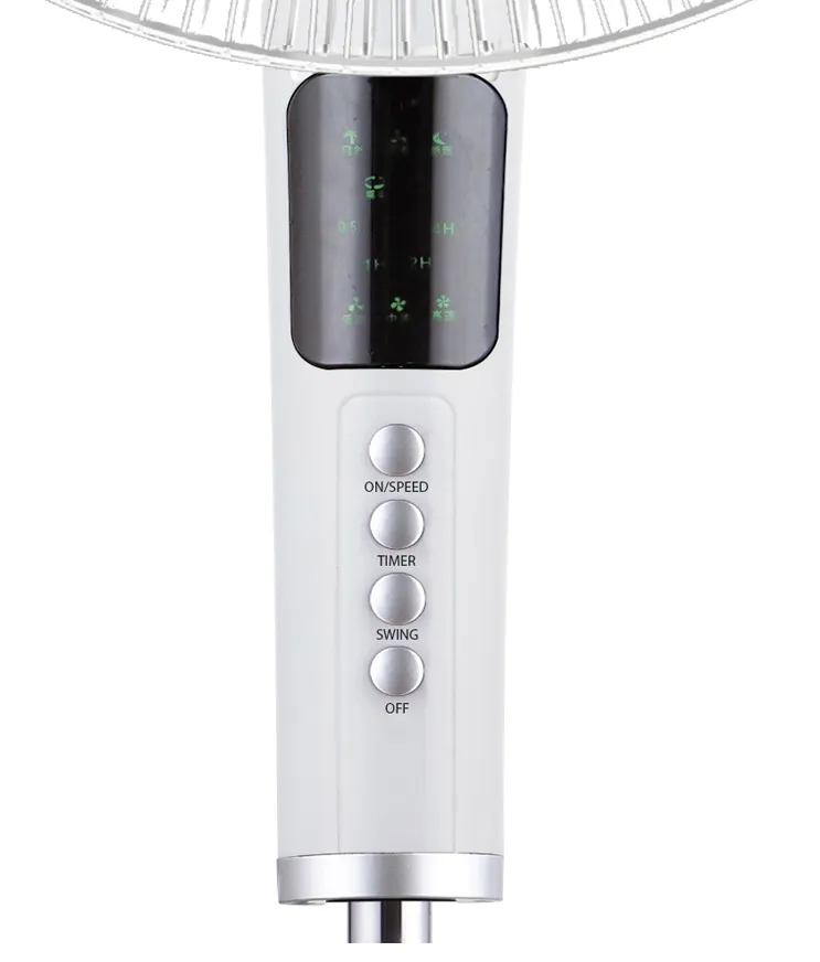 WetAir SF-5045W має на корпусі кнопки. Вони розташовані безпосередньо під моторним блоком на ніжці. Трохи вище над ними є дисплей, який надасть можливість моніторити роботу вентилятора. Особливо зручно, що в комплекті до всього ще й додається пульт дистанційного керування. З ним ви можете налаштувати вентилятор на будь-який режим роботи, навіть не підходячи до нього.