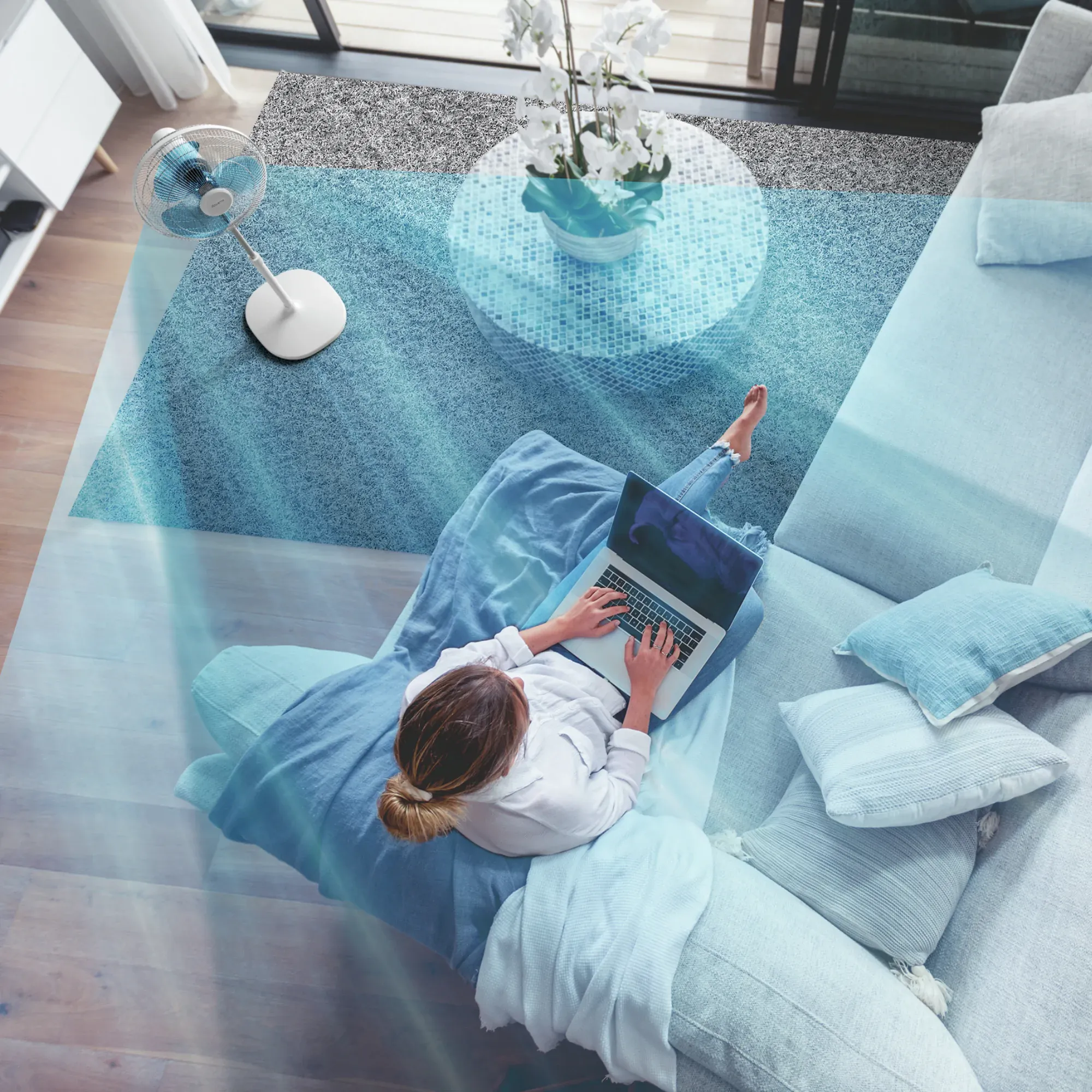 Насолоджуйтесь неймовірною прохолодою в тиші, поки ви дивитеся телевізор, працюєте або розважаєтеся з друзями та сім'єю. Цей вентилятор із рівнем шуму 49 дБ (на мінімальній швидкості) гарантує охолодження без зайвого шуму. Завдяки такій тихій роботі ви можете використовувати його навіть під час сну, не перериваючи свого відпочинку.