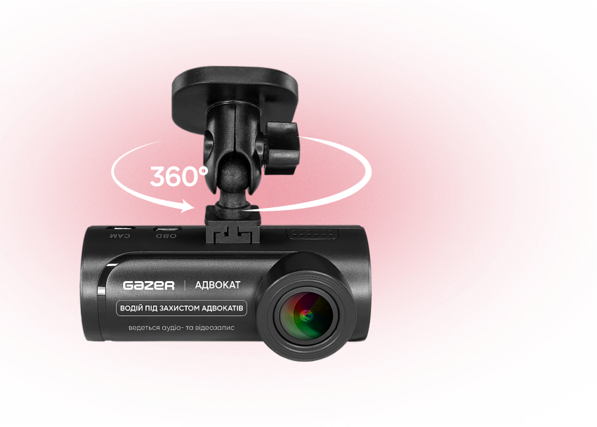 Gazer E7 Ultra оснащений кріпленням з поворотом на 360°. Це дозволяє швидко розвернути реєстратор для запису в салоні або фіксації розмови через бокове скло водія. Незамінно для запису спілкування з поліцією, представниками влади чи іншими водіями. Реєстратор можна швидко зняти одним рухом, наприклад, при проїзді блокпосту або під час руху військових.