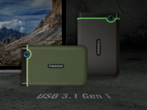 Transcend StoreJet 25M3 – це зовнішній жорсткий диск, який не тільки надійно захищений від ударів, але й оснащений високошвидкісним USB 3.1 Gen 1 для блискавичної передачі файлів.