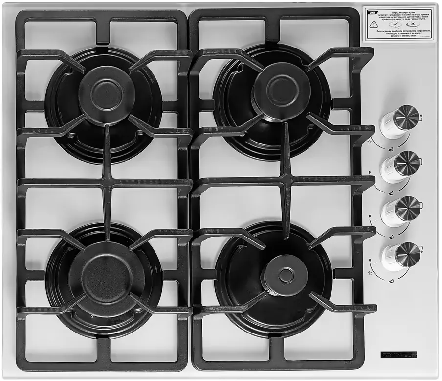 Grunhelm GPG 3211 WF обладнана двома чавунними решітками, які забезпечують стійкість посуду і рівномірний розподіл тепла. Для забезпечення безпеки передбачена система газ-контролю, яка автоматично припиняє подачу газу при згасанні полум'я. Функція електропідпалу дозволяє легко і швидко запалювати конфорки, що значно спрощує процес приготування їжі. Управління варильною поверхнею здійснюється за допомогою механічних регуляторів, розташованих збоку панелі управління. Таке розташування регуляторів забезпечує зручний доступ і запобігає випадковому ввімкненню або вимкненню конфорок.