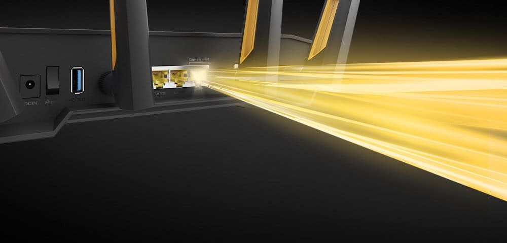 TUF Gaming AX3000 V2 може забезпечити інтернет-підключення з пропускною спроможністю до 2 Гбіт/с завдяки наявності WAN-порту 2,5 Гбіт/с та можливості об’єднання двох окремих каналів по 1 Гбіт/с кожен, підключених до портів LAN1 і LAN2.